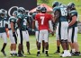Andy Reid toned things down today as the Birds took off the pads and worked out in shorts this morning. They did more situational work with the offense driving late in the game while trailing