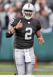 That’s right, JaMarcus Russell was yanked with the Raiders down 21-0 to the New York Jets.¬† He was so bad, that they decided Bruce Gradkowski gave them a better chance to win.¬† Ouch. Russell was 6-11 for 61 yards with two INT’s and a fumble.¬† If I was the NFL owners, I would bring a picture of Russell to the meetings with the player’s union as Evidence A of why these huge rookie contracts are a bad idea.¬†¬†