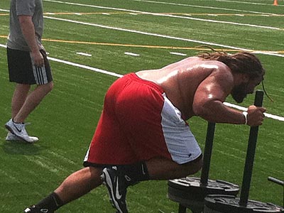 It wasn’t football specific work, but the focus on speed, changing direction, while building explosiveness and power. They spent some of their time driving a sled to work on their power.
