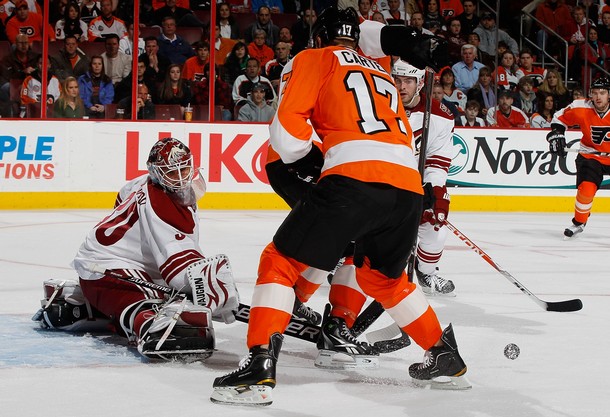 My guess, and this is purely speculation, is that the Flyers are holding out for $5.5 million and the Bryzgalov camp is holding out for $6 million. I mean, there’s no reason Bryz couldn’t- his camp holds all the cards right now.