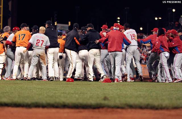 The aggressor that seemed to start the extracurricular activity was Whiteside, who looked like he was ready for a street fight. He was bouncing around on his toes in front of Shane and then immediately tackling Placido Polanco when he came in from first base.