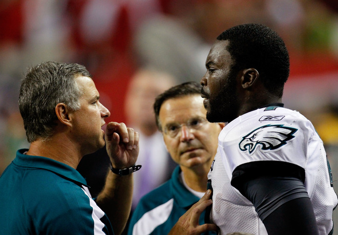 Vick was helped off the field after the play and we later learned the Vick had suffered a concussion on the hit. it was ironic that Vick who risks health and limb when he leaves the pocket on his amazing scrambles, gets knocked out of the game, while throwing the ball from the pocket.