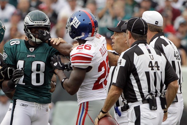 Right before LeSean McCoy carved up the Giants defense on his lone touchdown run on Sunday, Antrel Rolle and Brent Celek got into a bit of a shoving match. The little tiff earned Rolle a 15-yard unnecessary roughness penalty and moved the Eagles down to the 11-yard line.