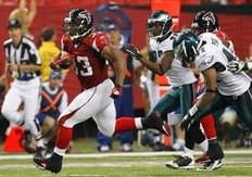 ATLANTA, GA – SEPTEMBER 18: Michael Turner #33 of the Atlanta Falcons rushes upfield against the Philadelphia Eagles at Georgia Dome on September 18, 2011 in Atlanta, Georgia. (Photo by Kevin C. Cox/Getty Images)