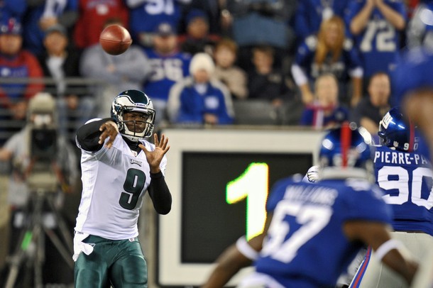 His second INT wasn’t as bad as the first. Young kind of forced the ball into Clay Harbor’s arms, and it was tipped and intercepted. The good thing about both of these early turnovers didn’t hurt the Eagles, because the Eagles defense didn’t allow the Giants to score any points after they coughed up the ball.