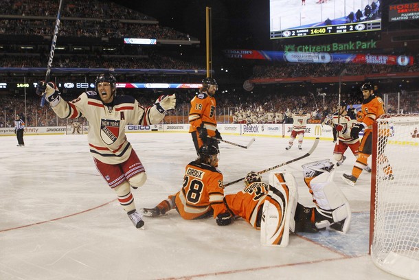 The dam broke at the 12:26 mark, when Brayden Schenn picked up a rebound from a Matt Carle shot and tallied his first career NHL goal. The accomplishment mirrored former Flyer Danny Syvret’s first career NHL goal in the 2010 NHL Winter Classic.