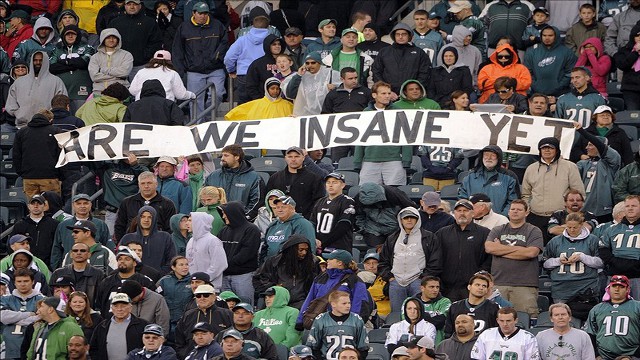 As I said before, you can pick your friends but you can’t pick your family and you can’t pick your football team. You’re born into it, the fan fraternity of the Philadelphia Eagles. Now I can understand it if you’re from a city that has no team or your team is young to the league like the Jacksonville Jaguars and Carolina Panthers who joined the league in 1995. (I can’t imagine what not having a home town team would be like).