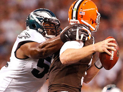 To put it simply, Weeden can’t beat them this weekend, so I would like to see Juan Castillo take away the Browns running game, by moving eight into the box at times and letting middle linebacker DeMeco Ryans control the defensive line.  Ryans is experienced enough to have a good feel for when the Browns will run the ball and when they will throw it.