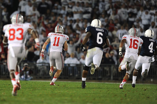 Ohio State got the ball first and failed to score. Penn State had a chance to score on their next drive, but quarterback Matt McGloin failed to connect with wider receiver Allen Robinson on what would have been a wide-open touchdown.