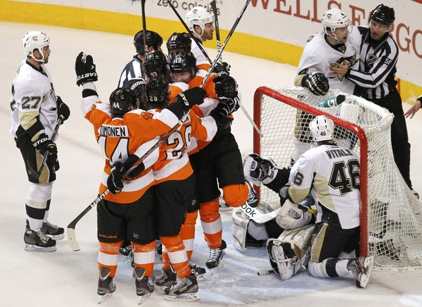 Defense is another story.   Bruno Gervais is the only defenseman who has seen ample playing time (over in Germany’s Bundesliga) while Niklas Grossmann skated for just four games with Read on SSK.  Luke Schenn, Brayden Coburn, and Kimmo Timonen have just been practicing while Andrej Meszaros is still recovering from a torn Achilles tendon.