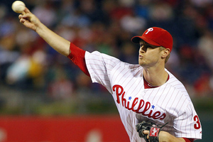 - The Phillies scored their first run off of three straight singles from Jimmy Rollins, Chase Utley, and Ryan Howard. Unfortunately, any chance that the team had to get more was wiped away by double-play groundout from Michael Young.