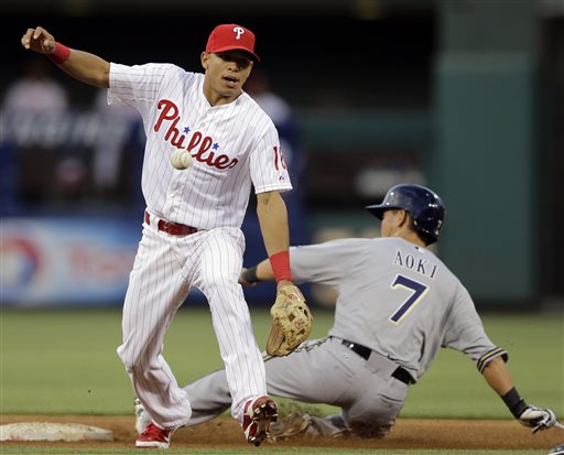 • Kyle Kendrick was used a pinch-runner in the ninth for Rollins, and was picked off of second by Francisco Rodriguez. Right after Kendrick was picked off, Hernandez doubled. It was a terrible blown call, shortstop Jean Segura never had possession of the ball but the umpire called Kendrick out.