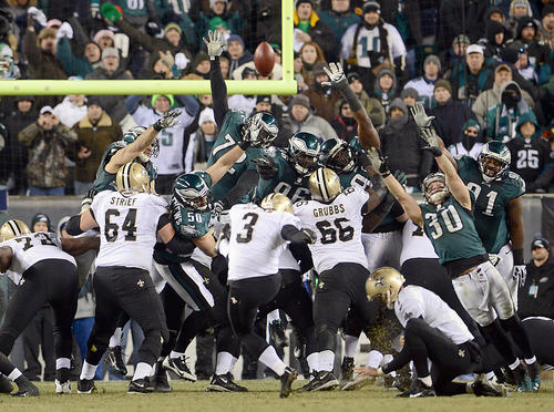 Chip Kelly’s statement after signing a deal to be the Birds new head coach, “Big people beat up little people”, was never more true than on Saturday night at Lincoln Financial Field when the Saints were pounding the Eagles defensive line and the New Orleans defensive line was putting the brakes on Shady McCoy and holding him to 77 yards on 21 carries.
