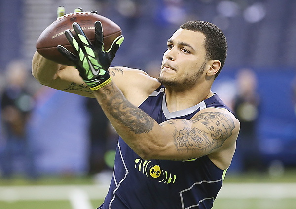 Kelvin Benjamin 6-5 240 (FSU)- You can’t teach size, and he is the biggest all around receiver in the draft. Benjamin has enough speed to create space and make plays after the catch, but his biggest strength will be winning matchups, especially in the red-zone.