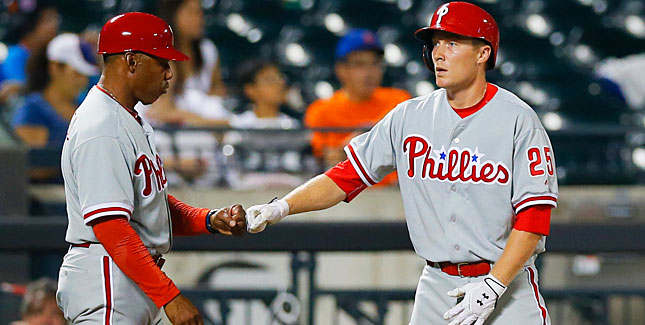 - In the eighth inning, the team posted a four-run rally to take the lead. Ryan Howard reached on an error to start the inning, and Marlon Byrd took a walk. After Domonic Brown singled to load the bases, Carlos Ruiz came through with an RBI-single to cut the deficit to two. Cody Asche tied the game with a pinch-hit double to score two runs, and Ben Revere gave the team the lead with an RBI single.