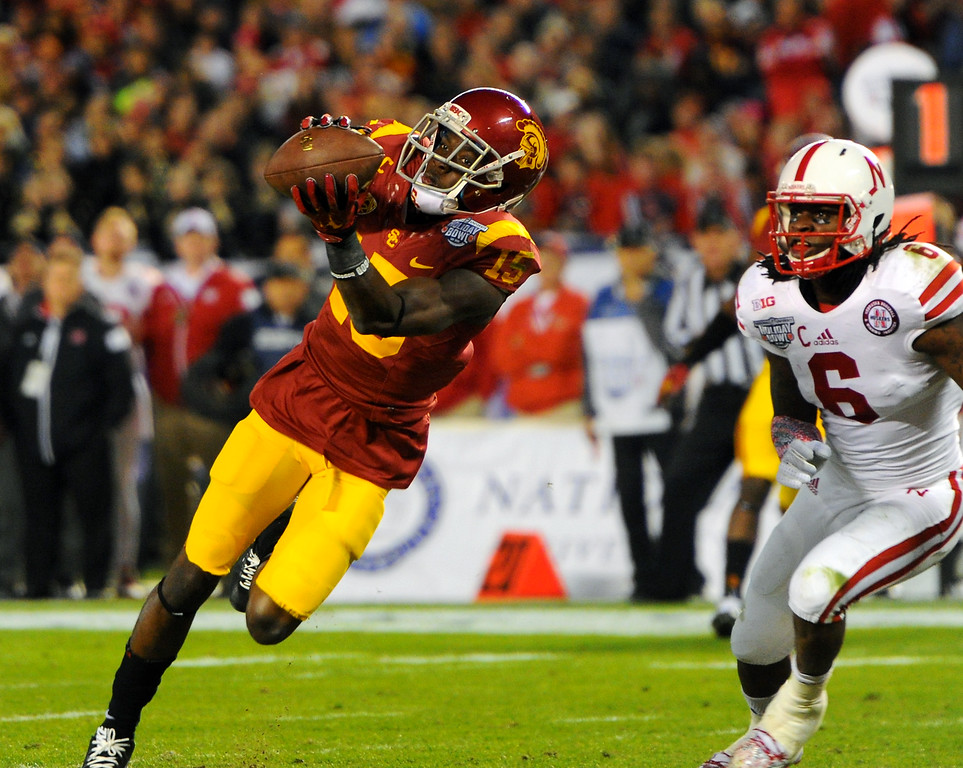 “USC WR Nelson Agholor hauls in a 17-yard touchdown pass in the second quarter against Nebraska, Saturday, December 27, 2014, in the Holiday Bowl. (Photo by Michael Owen Baker/Los Angeles Daily News)