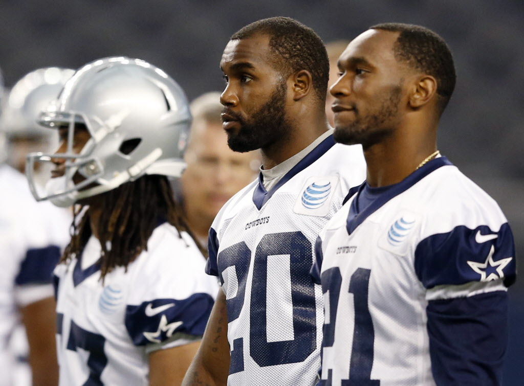 Dallas Cowboys running back Joseph Randle (21) and Dallas Cowboys Darren McFadden (20) watch as a play goes on during Dallas Cowboys minicamp at AT&T Stadium in Arlington, on Wednesday, June 17, 2015. (Vernon Bryant/The Dallas Morning News)