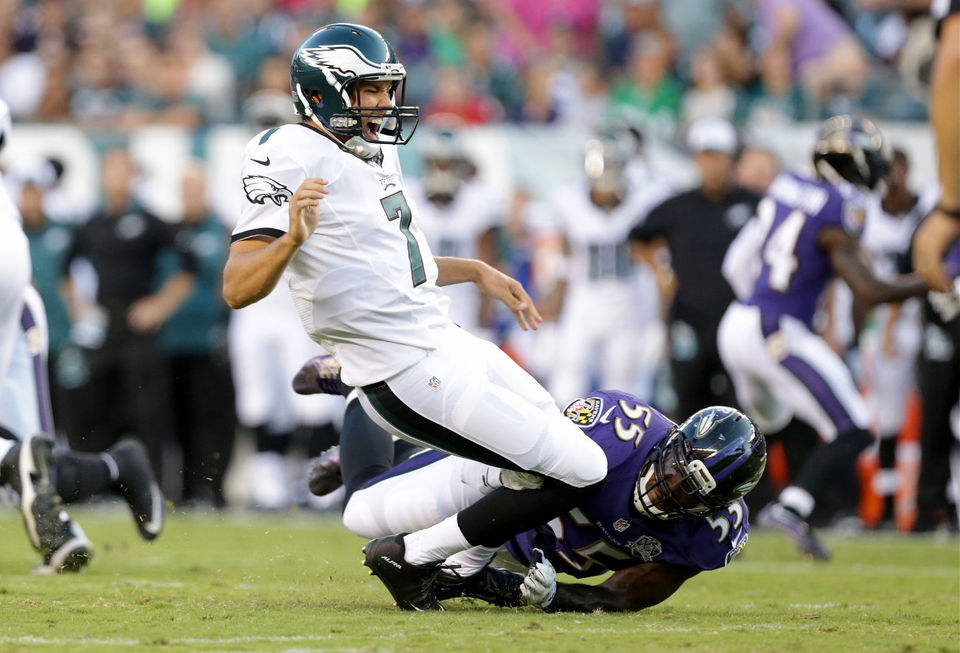 I know everybody is yelling for the head of Terrell Suggs today, but he may have done Kelly and the Eagles a favor by showing them that they’re putting Bradford at risk with the read option.  In a way, Eagles center Jason Kelce said he’s not mad at Suggs for doing his job, which is to make the sure the quarterback doesn’t run with the football.