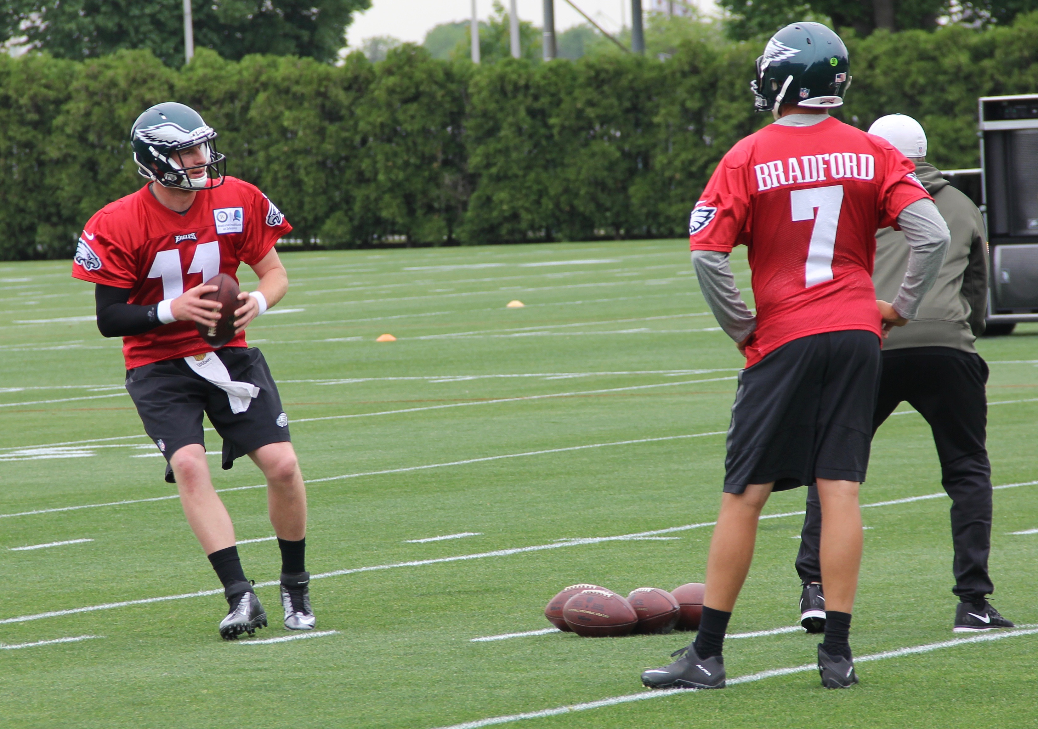 Bradford&Wentz1Eagles head coach Doug Pederson made it very clear that despite giving up everything but the kitchen sink to get young Carson Wentz, Sam Bradford will be the guy starting the season behind center.