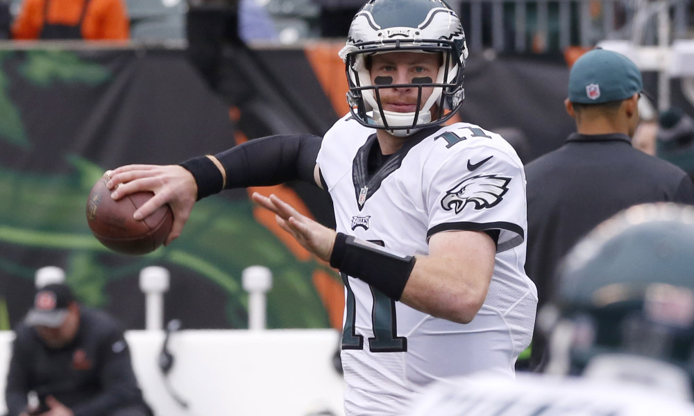 Dec 4, 2016; Cincinnati, OH, USA; Philadelphia Eagles quarterback Carson Wentz (11) warms up before a game with the Cincinnati Bengals at Paul Brown Stadium. Mandatory Credit: David Kohl-USA TODAY Sports