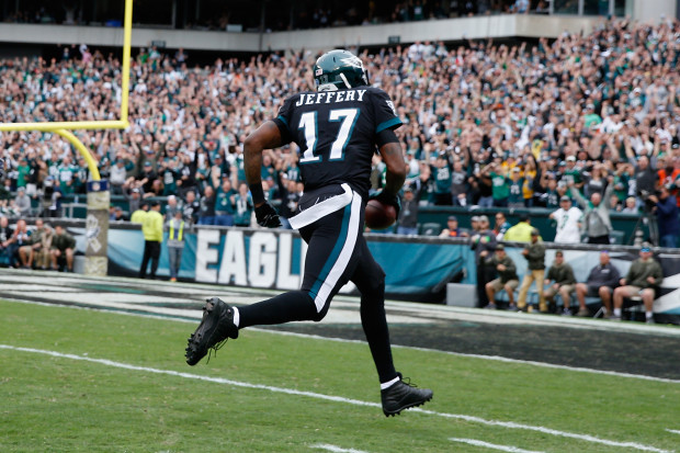 PHILADELPHIA, PA – NOVEMBER 05: Wide receiver Alshon Jeffery #17 of the Philadelphia Eagles runs in a touchdown the Denver Broncos during the first quarter at Lincoln Financial Field on November 5, 2017 in Philadelphia, Pennsylvania. (Photo by Joe Robbins/Getty Images)