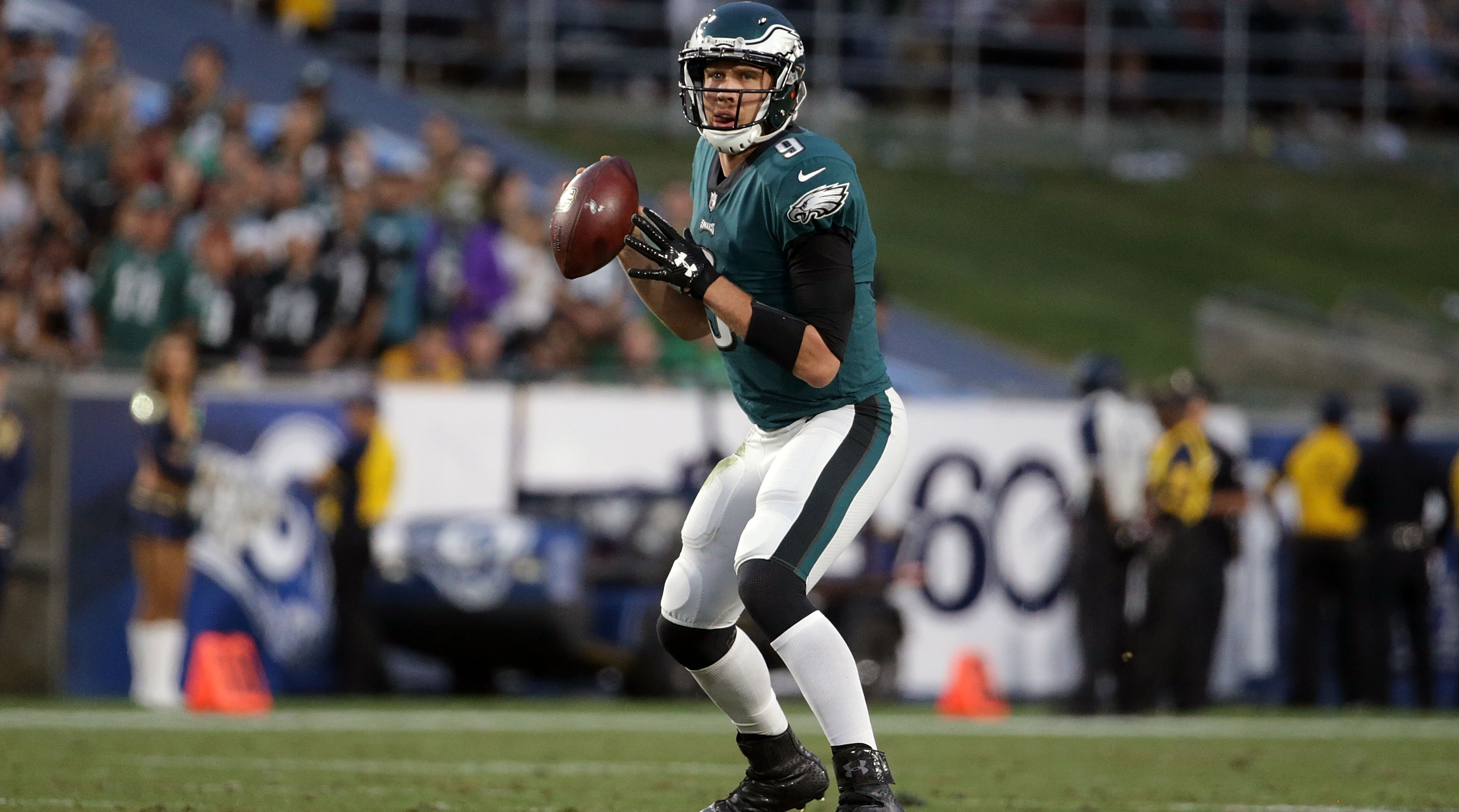LOS ANGELES, CA – DECEMBER 10: Nick Foles #9 of the Philadelphia Eagles prepares to throw a pass during the game against the Los Angeles Rams at the Los Angeles Memorial Coliseum on December 10, 2017 in Los Angeles, California. (Photo by Jeff Gross/Getty Images)