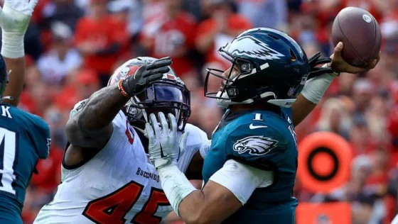 As usual the blame starts at the top with head coach Nick Sirianni. He did a poor job of adjusting to the game plan that the Bucs defense threw at them. He didn’t revert to a short passing game by letting Jalen Hurts know that the Bucs cornerbacks were playing ten yards off of the receivers, so they could have thrown 8 yards routes to DeVonta Smith all day long. If Troy Aikman is seeing it up in the booth, why aren’t the Eagles coaches seeing it down on the field.